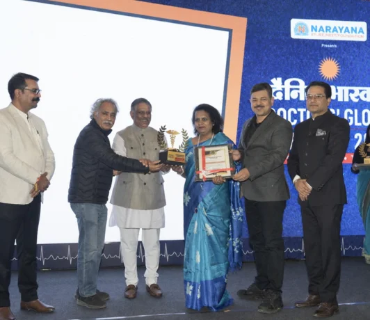 Bhagwan Mahaveer Cancer Hospital was honored for its excellence in patient-centric cancer care. The award was presented by Shri Gajender Singh Khimsar, Hon’ble Health Minister of Rajasthan, and received by Dr. Geetanjali Joshi, Medical Director, on behalf of the hospital at the Dainik Bhaskar event.